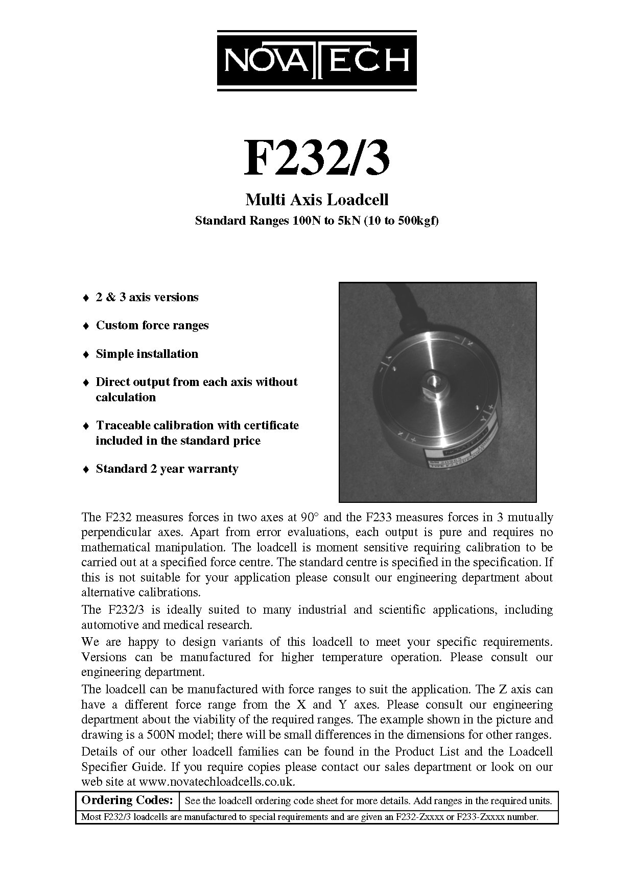 F232/3非常適合許多工業和科學應用,包括汽車和醫學研究。這種測壓元件可以根據不同的應用要求制造不同的測力范圍。