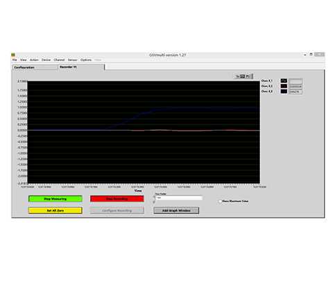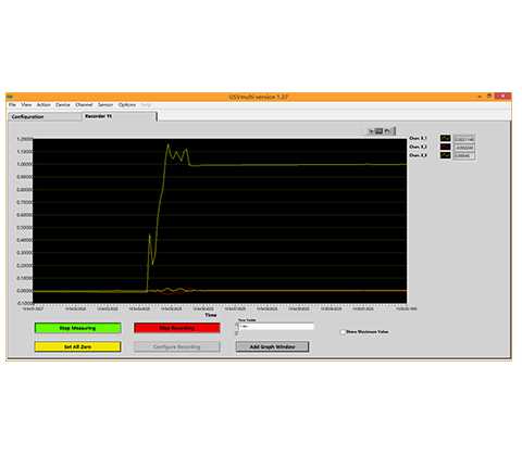 信號通過放大器AD轉換,USB接口讀入電腦,從軟件界面讀取實時曲線;可存儲為TDMS文件,兼容excel;