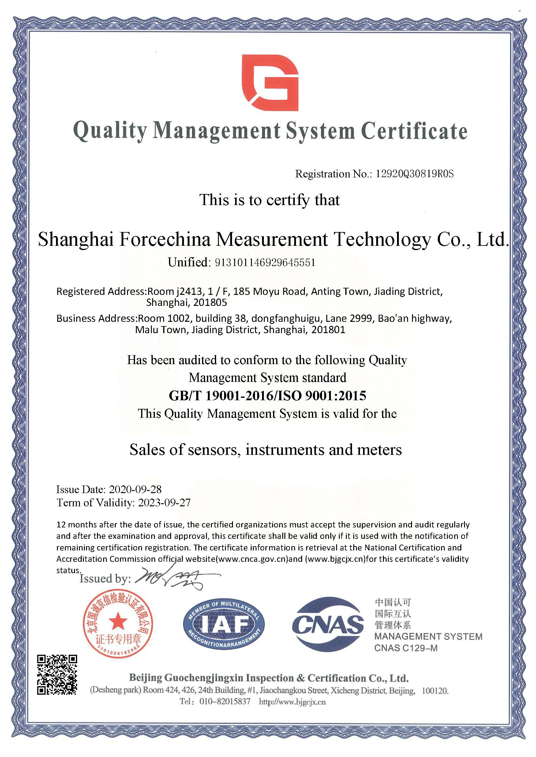 ISO9001:2015質(zhì)量管理體系認(rèn)證