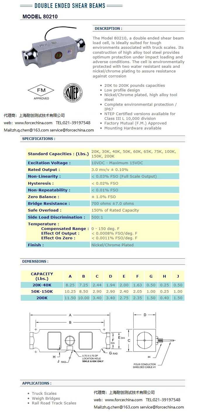 量程(Ibs):20K、30K、40K、50K、60k、65k、75k、100k、150k、200k