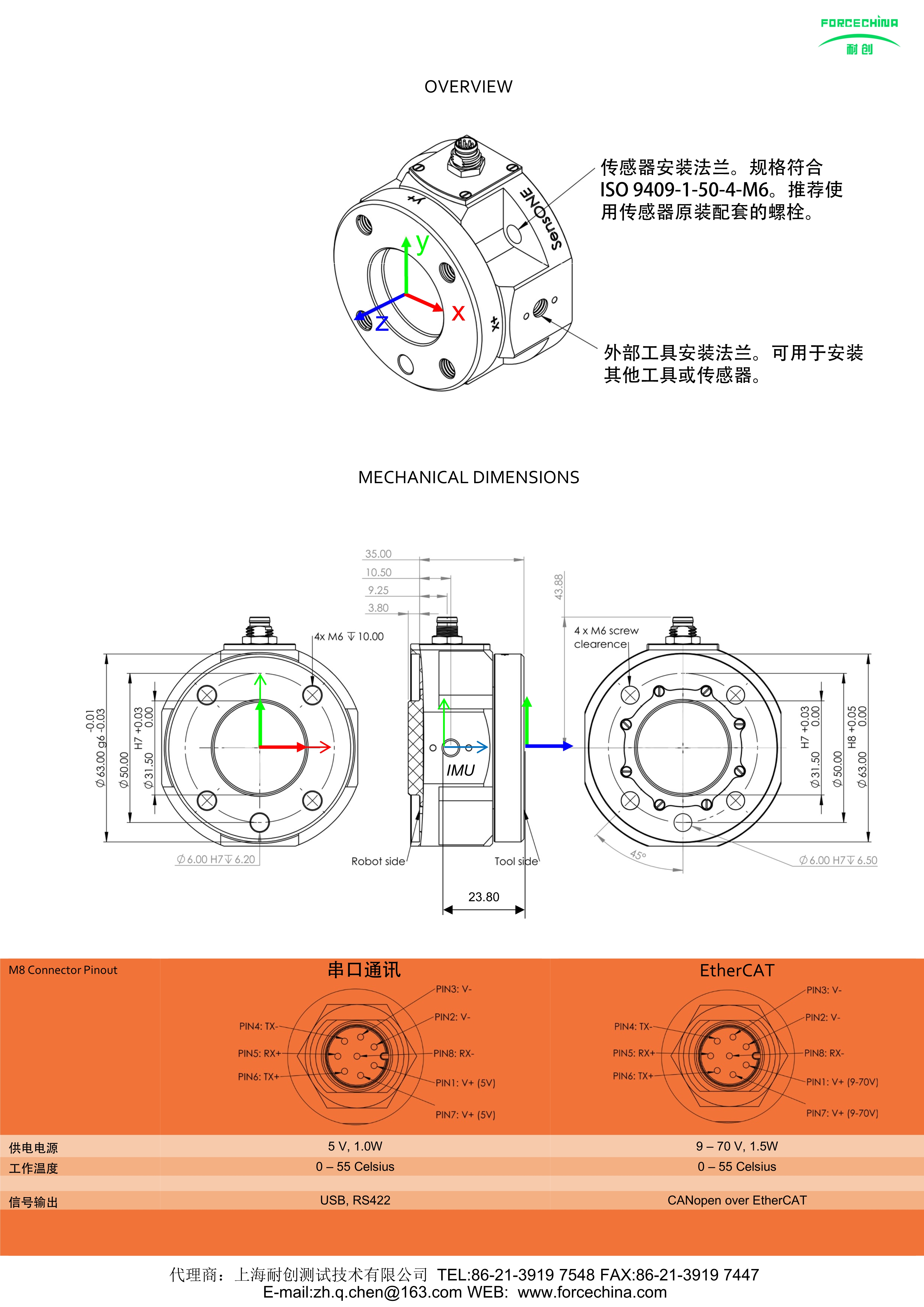 1. USB,RS422   800Hz采樣率;防護等級 Dustproof and water-resistant