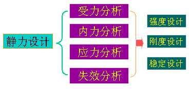 | 其中的靜力設計是很重要的,包括受力分析、內力分析、應力分析和失效分析。最后有強度設計、剛度設計和穩定設計。所以可以看出,靜力設計在工程設計中有很重要的地位。 |