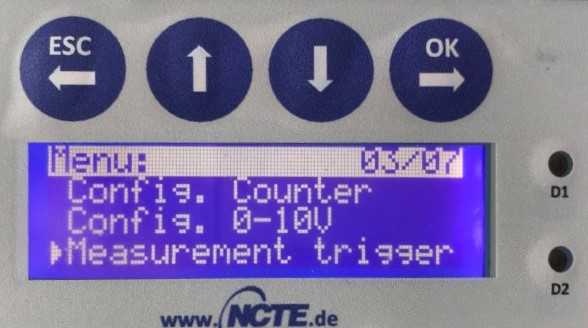 按三次上下鍵,按OK 進入Measurements trigger