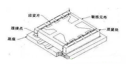 新式的壓阻式加速度傳感器的結構,它是由整塊硅晶體制成的。它以硅壓阻應變片作為敏感元件,這實際上是一塊固定的硅電阻,其電阻的變化與所承受的機械應力成正比。這可以由體積很小的整體硅片經過微細加工制成,因此又稱為整體式傳感器,從而避開了把硅應變片粘貼到懸梁臂上的老式結構所帶來的機械連接不準確的影響。壓阻式加速度傳感器在電路中構成為惠斯登電橋,產生與振動加速度成正比的電信號。由于是配對使用,所以保證了在不同的溫度條件下輸出的穩定性。