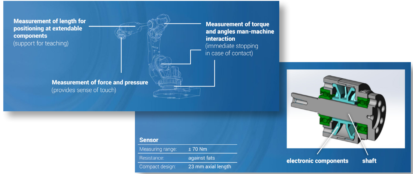 應(yīng)用1,用于測量機(jī)器人關(guān)節(jié)的扭矩,集成于機(jī)器人關(guān)節(jié)之中,在有限的測量空間內(nèi)感知關(guān)節(jié)扭矩。